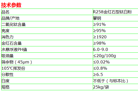 R-298是攀钢重庆钛业公司开发的新一代高档通用型金红石钛白粉。采用了先进的色相与粒径控制技术和氧化锆、氧化铝无机包膜工艺,具有易分散、白度好、亮度高、遮盖强、高耐候等特性,是硫酸法钛白的顶尖之作,适用于涂料、油墨等领域,也可用于塑料着色。