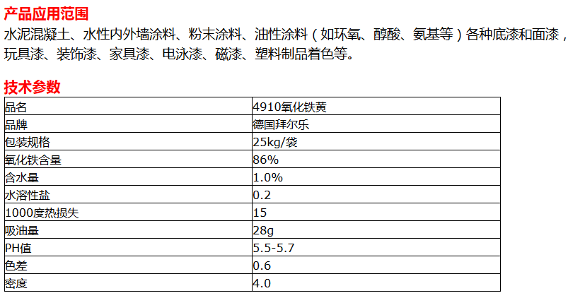 德国拜耳乐4910氧化铁黄